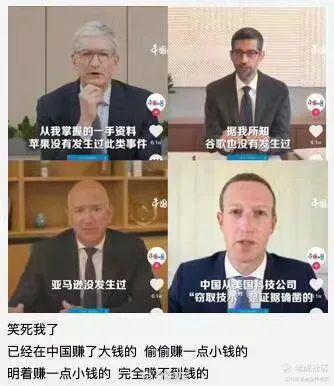 很多人看到这张图,美国时间7月29日下午,亚马逊、苹果、谷歌、Facebook四家公司CEO出席了美国众议院委员会下属的反垄断小组委员会召开的听证会。