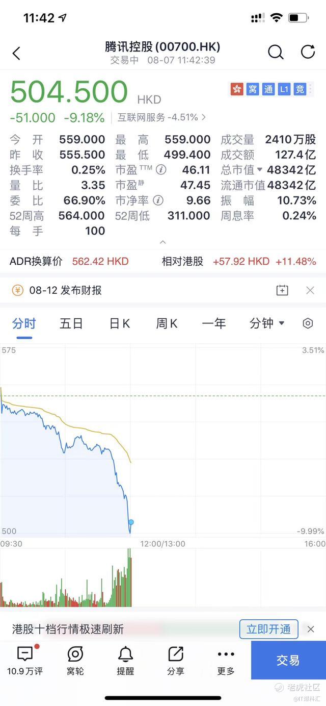 受此消息影响,截止发稿,腾讯股价大跌10%,市值蒸发超5000亿港元。