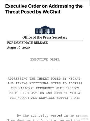 此外,特朗普当天还签署了一项针对微信的行政命令。行政令规定,“在此命令发布45天后,禁止以下行为......(禁止)任何个人或受美国司法管辖的任何财产与腾讯控股有限公司间进行与微信有关的任何交易。”