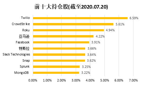 本基金成立以来跑赢标普500指数$标普500指数ETF(IVV)$,累计收益达到82.7%,基本在每次大盘调整之后反弹力度都很大。尽管波动率高于大盘指数,但其年化复合收益率是标普500指数的一倍,达到20.37%。其夏普比率达到0.861,是比较优秀的成绩。