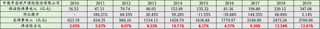 2010年,平安财险的保证险业务就位列其年度五大险种,次年该项保费收入同比增长186%。