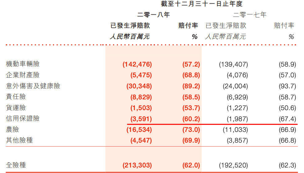 2018年,信用保证险业务开始起飞的人保财险决定,在财报中单独披露此项业务。而此前,公司一直将其归为“其他险种”。