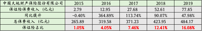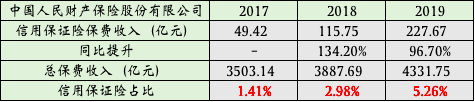 2018-2019年,人保财险信用保证险保费收入同比分别提升134.2%、96.7%,连续两年成为报告披露的七大险种中增速最快的险种。