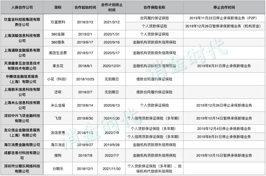 据消金时代统计,人保财险与12家消金平台的合作时间均集中在2018-2019年。