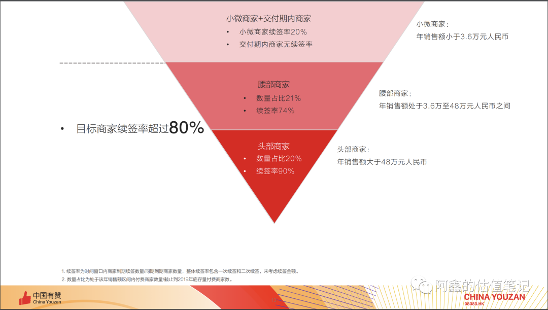 根据有赞披露的这个数据,还可以算出来,有赞2019年整体的续签率大约在45%左右。