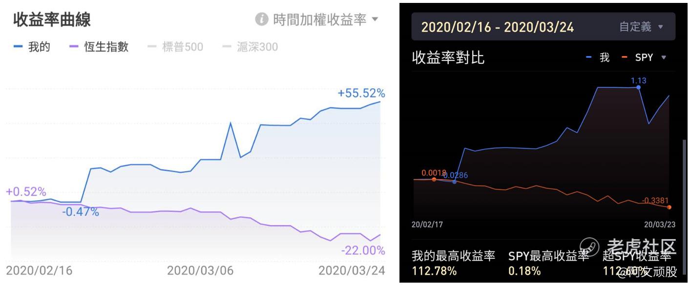 后记:我在这天把熊市多数做空都退场,结束这段肺炎熊市之旅,来看一下我两个主要帐户在2/16~3/24的报酬率,收入远远超过年初给自己订的目标