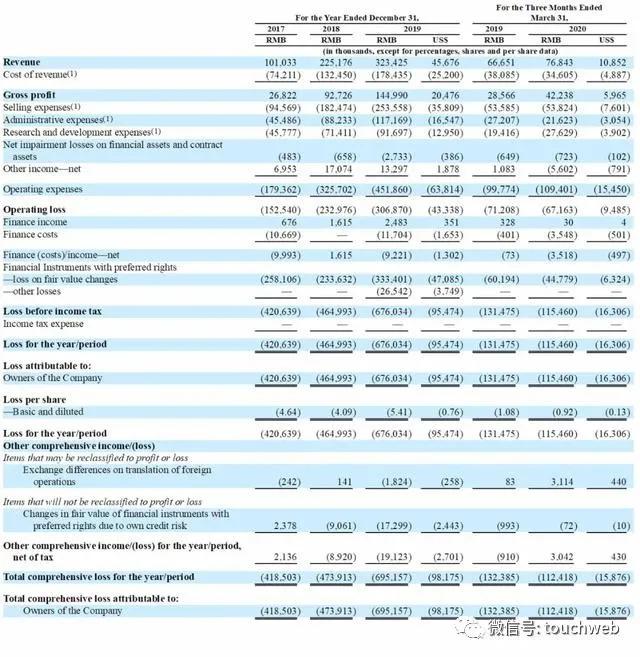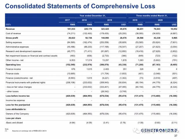2020年第一季度运营亏损为6716万元,上年同期运营亏损为7121万元。