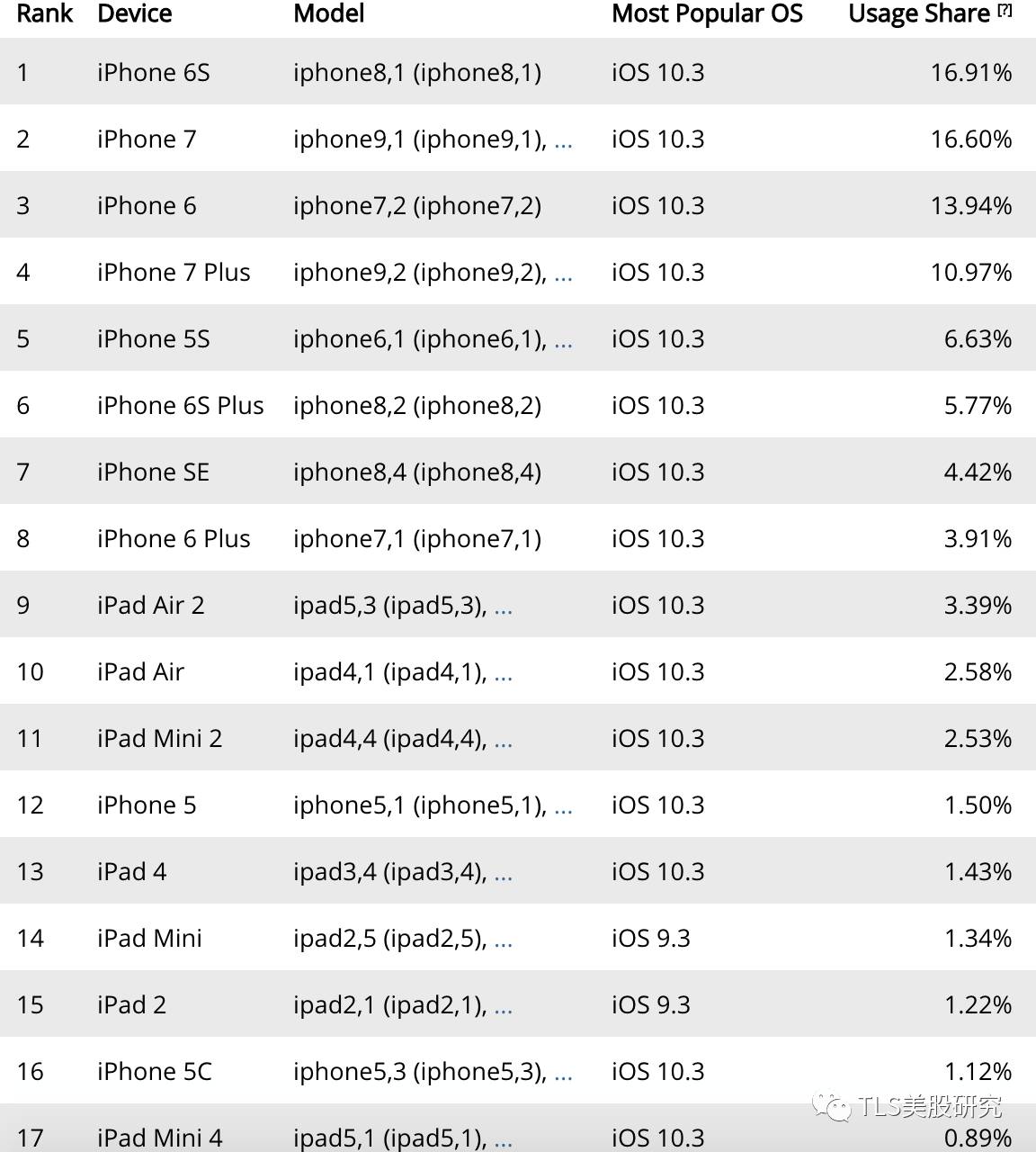 根据Apteligent Data的统计,截止至2017年7月, 目前市面上iPhone6S和6仍是iPhone阵营中的主力军。