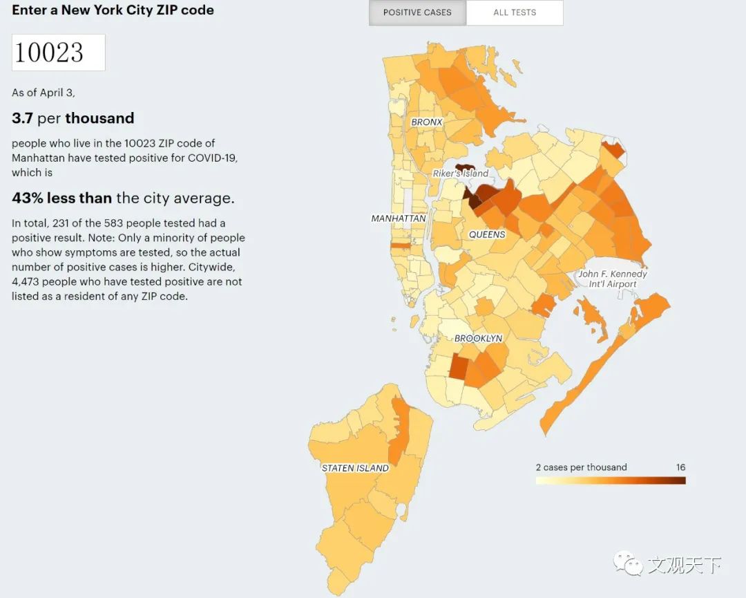 1. 截至4月4日的周六,皇后区确诊2万多人,皇后区是纽约市每10万人中确诊人数最高的区域。