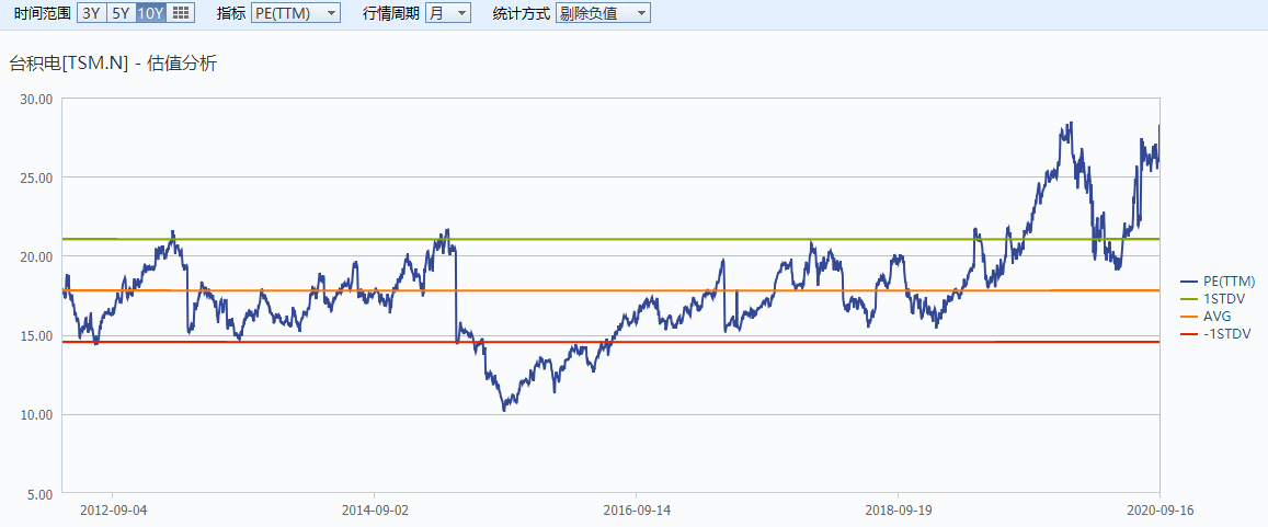 $台积电(TSM)$ 从估值上看并不便宜甚至有点偏高,在当下估值情况下,不要对上涨幅度有太多妄想。