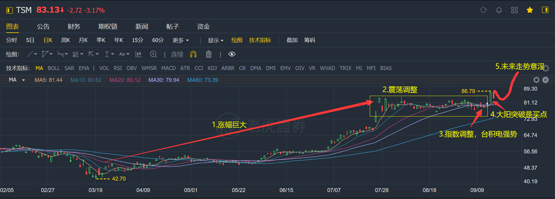巨大的获利盘需要调整消化,因此8月初至9月15日,台积电用了1个半月来消化调整。