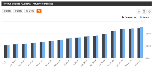 一个出色的季度为公司股价走牛提供了两个主要推动力。首先,数字化和客户关系管理是世界各地企业的关键投资,在疫情大环境的居家办公情况下,客户不希望在这样一个关键领域削减开支。