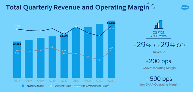 在此期间,Salesforce的利润率大幅增长,收入的快速增长加上利润率的不断扩大,使得公司二季度EPS大超预期。
