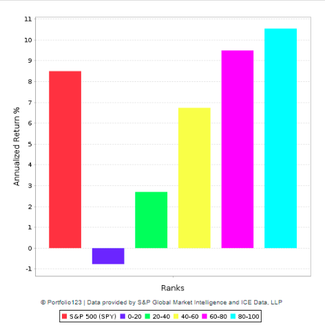回溯的业绩数据显示,从长期来看,PowerFactors排名高的公司往往会带来较高的回报,排名越高,预期回报就越高。