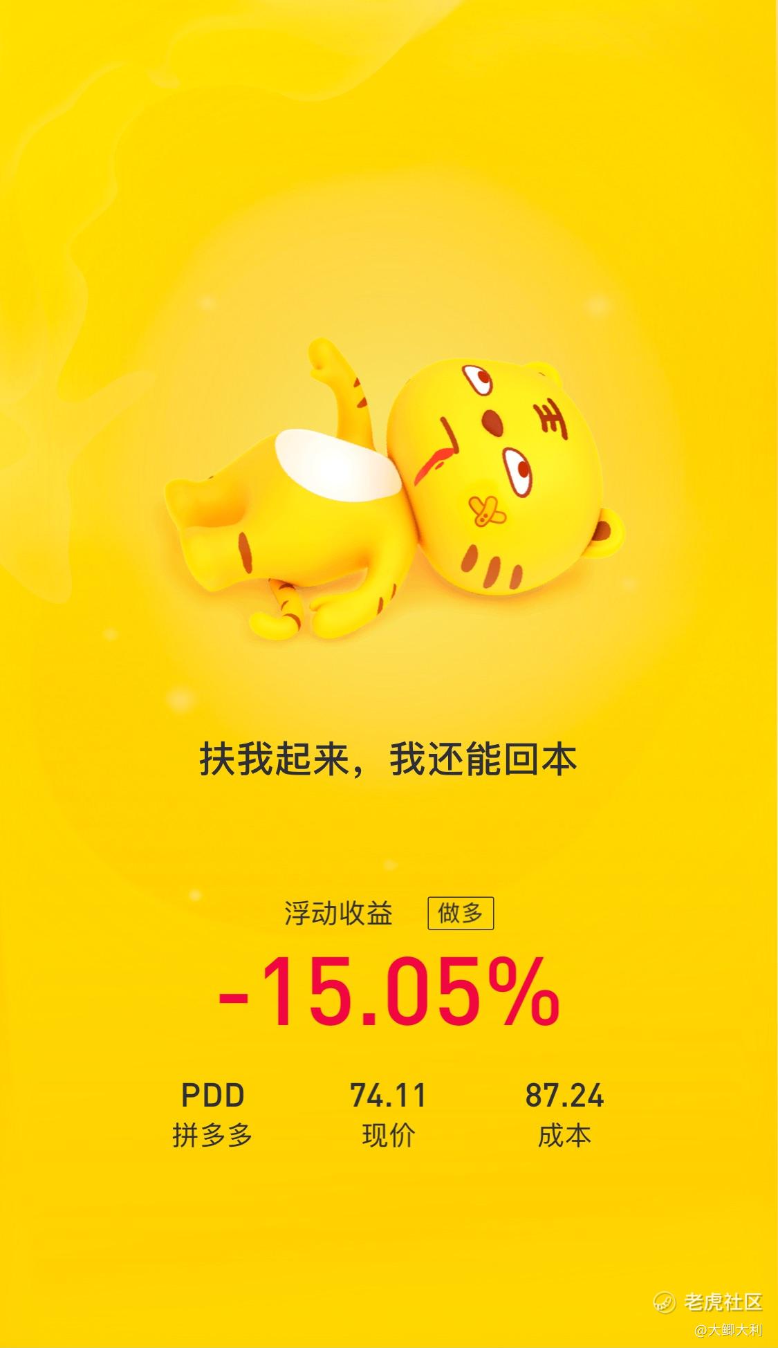 - 2020逆袭·2020-10-02别的股票涨是因为利好,拼多多大涨的时候没有什么利好的消息。7月份全球大涨拼多多下跌,很能说明问题了,如果在出现拼多多融资困难的消息,跌到30也不是没有可能。点赞举报