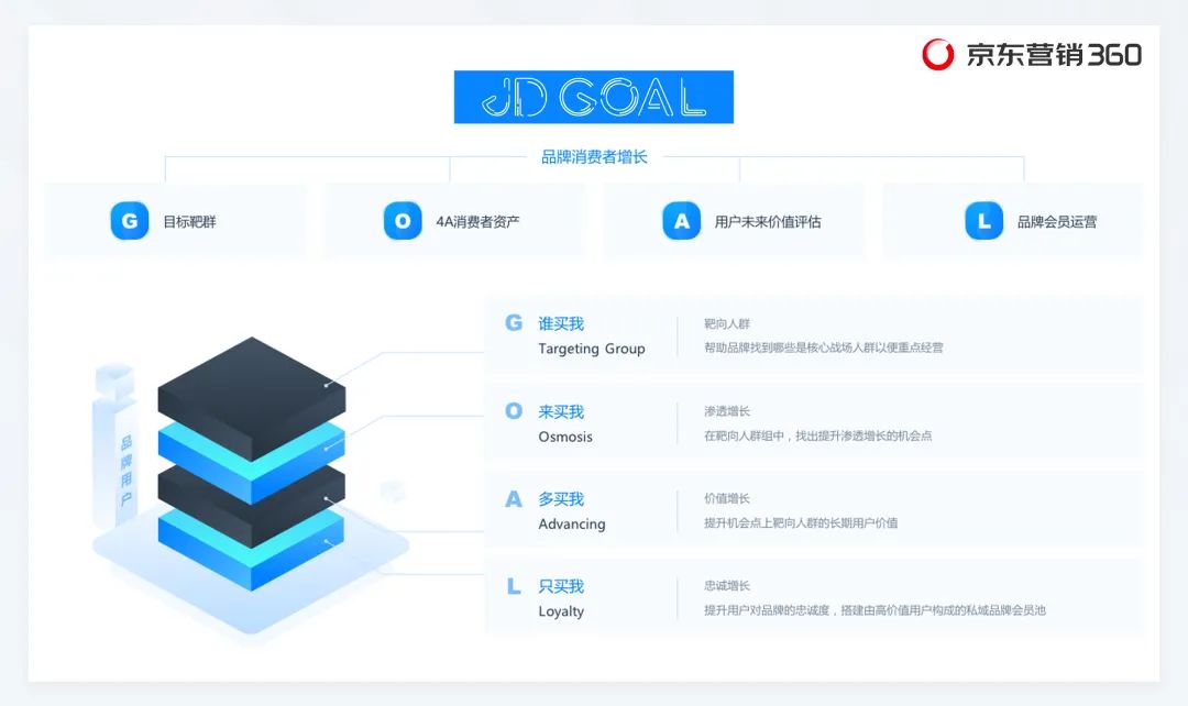 JD GOAL是京东营销360利用自身数据优势和平台资源,融入用户生命周期理论进行精细化运营后诞生的。它通过体系化的用户运营,精准定位目标人群并高效渗透,进而提升目标人群转化率,加速用户价值增长,建立起品牌与消费者的良好关系。