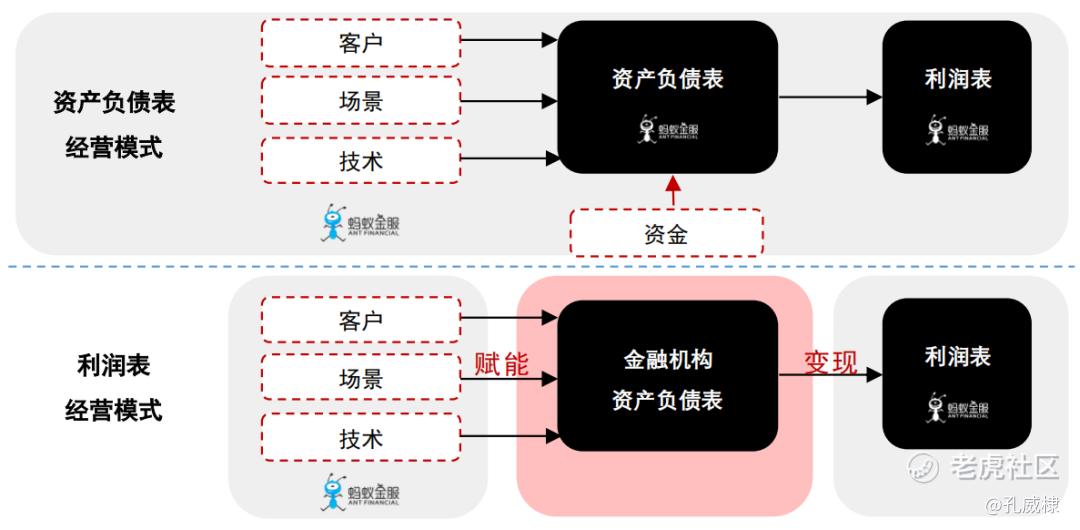 利润表经营模式:输出能力(包括技术、客户和场景),助力合作机构的金融业务开展,同时在赋能过程中实现收入(不承担风险敞口,不占用资本)。