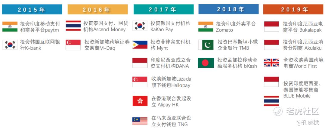 无论是直接投资多元化金融业态公司(如,2019 年投资印尼消费分期公司 Akulaku),抑或是借助当地既有支付机构进行的新业务牌照申设(如,印度支付平台 Paytm 开始布局消费借贷产品 PaytmPostpaid),蚂蚁金服正在海外复制支付宝的“从场景到支付到金融”过程。