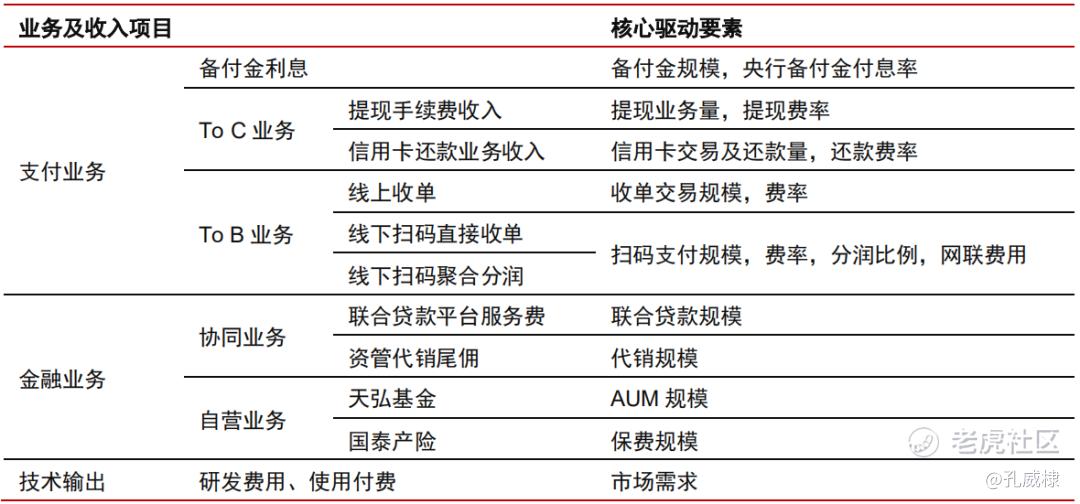 全方位的金融牌照变现一直以来都是公司的业务亮点,依托支付宝这一现象级支付入口,公司在理财、基金、保险、消费贷等金融业务领域全面开花。