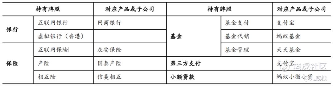 在支付领域以外,蚂蚁金服基于其业务板块投资于信贷服务、财富管理、金融 IT 等多个板块,通过蚂蚁金服本身及其控股、参股子公司囊括了金融领域的多张牌照。
