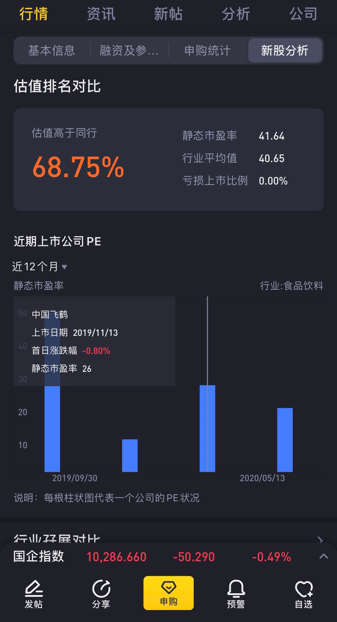 这样,就可以在原先了解公司【基本信息】、【发售信息】、【申购统计】的情况下,多一层与同行业新股(次新股)的对比。