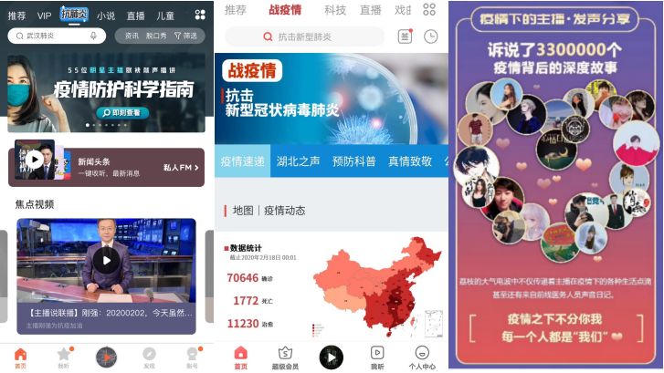 “我们每天接入央视新闻、人民网进行抗疫主题直播,并开设平安好医生、心理防护直播间为用户进行免费咨询。”喜马拉雅相关负责人对「创业最前线」说。