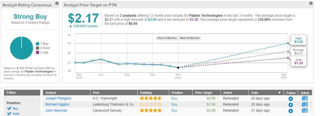 在市场上,另外两名分析师目前支持纽曼的论点,以支持Palatin。这些新增的买入评级加在一起构成了一个强有力的买入共识评级,平均目标价为2.17美元。如果分析师的观点得到证实,勇敢的投资者可能会获得339%的收益。