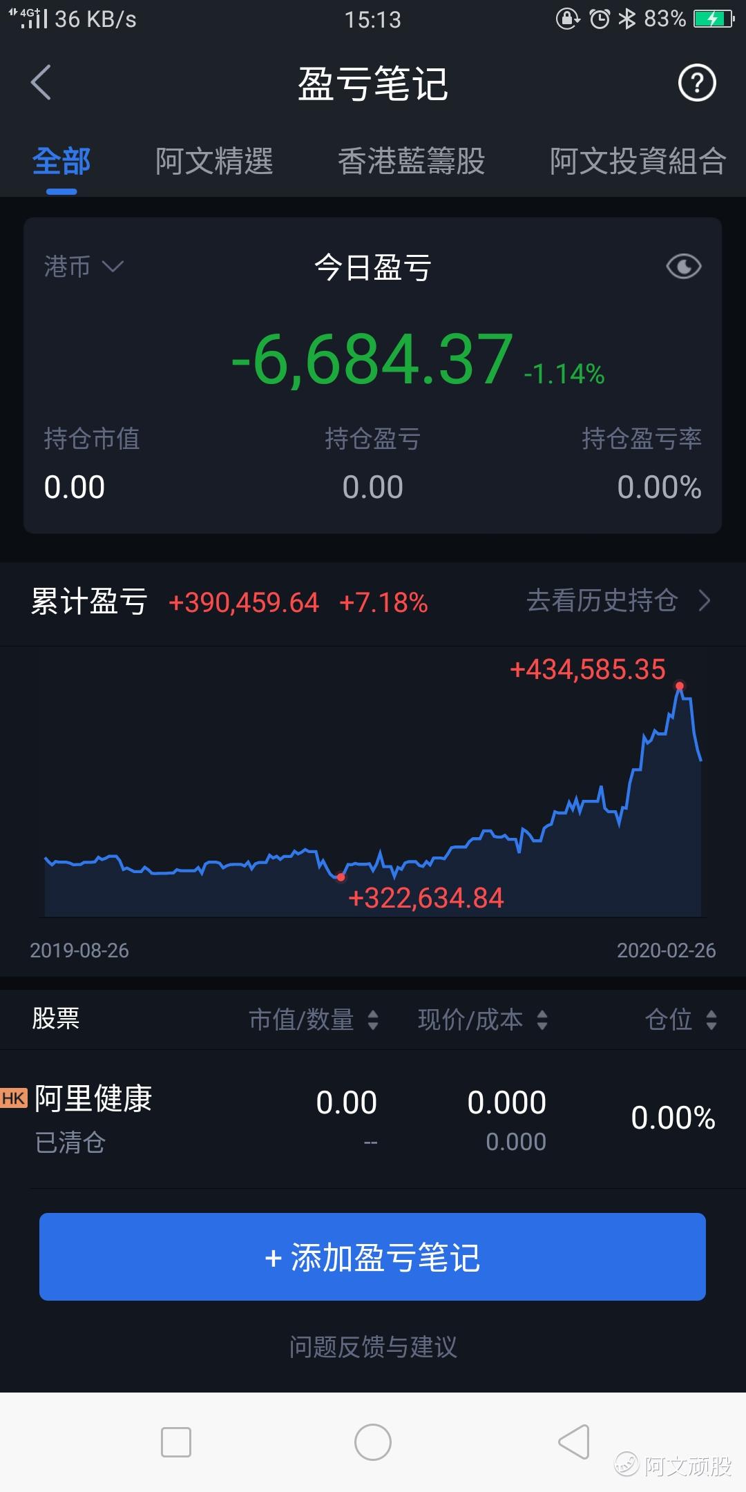 港股長期投資全數清場,我是第一類的那種守住獲利,那个價位賣,我都是正報酬