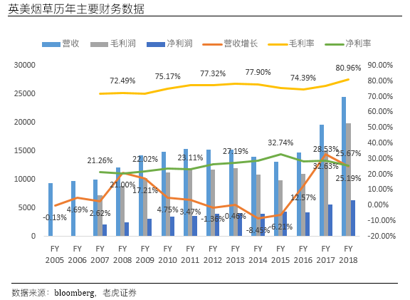 尤其是2017年英美烟草收购雷诺兹美国烟草公司使其收入增长了75%。