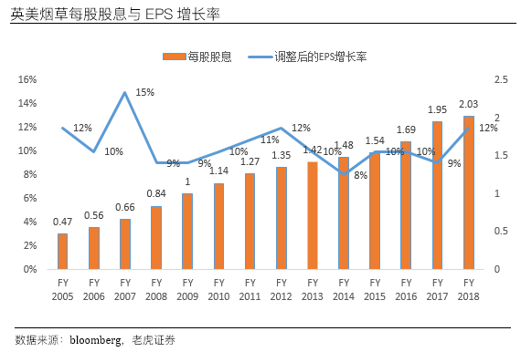 - 全球吸烟人数连年下降以及薄荷醇禁令是2018年股价大跌的诱因,但EPS等财务指标表现依旧良好。