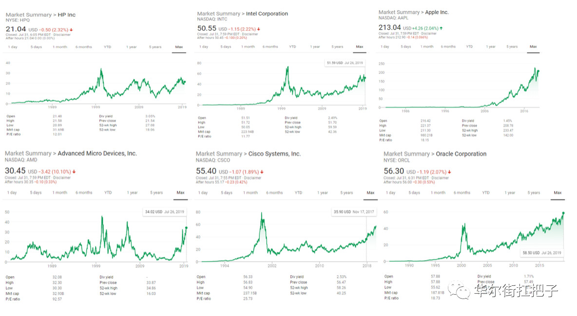 以上科技公司股票中,惠普,英特尔,AMD,思科,甲骨文这五家公司都经历了迅速增长快速下跌时期,波动较大。苹果,英伟达,eBay, 脸书,谷歌母公司Alphabet,特斯拉,Salesforce上涨更稳定,适合长线投资。$苹果(AAPL)$