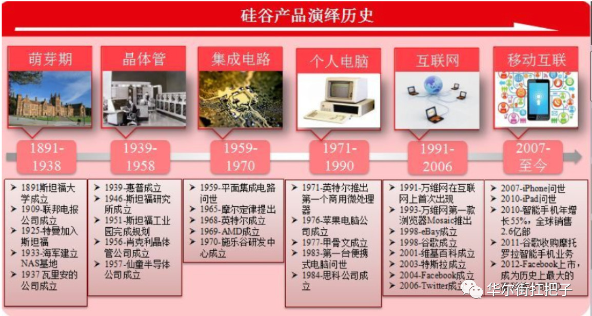 硅谷各个发展阶段具有代表性的公司: