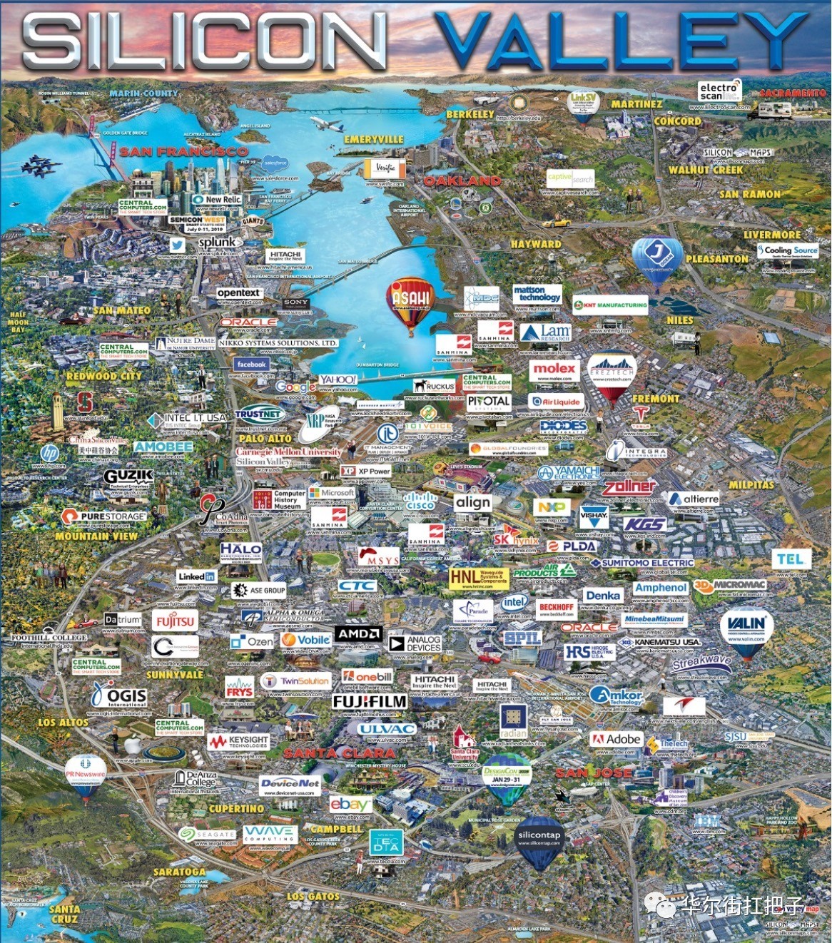 惠普,英特尔,苹果,AMD,思科,甲骨文,英伟达,eBay, 脸书,谷歌母公司Alphabet,特斯拉,Salesforce。