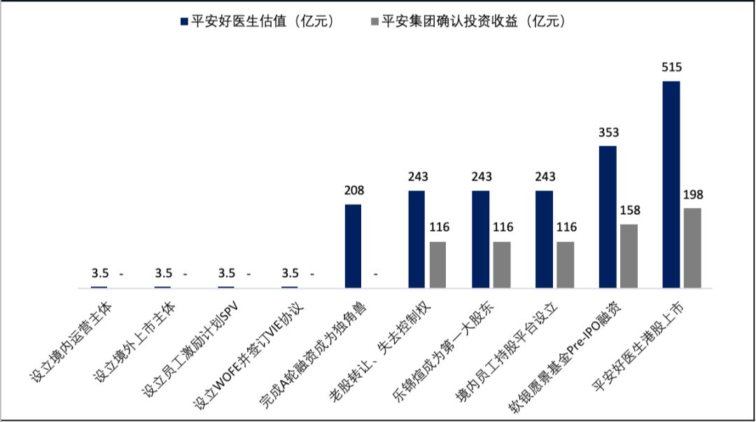 下图:平安好医生各阶段估值和平安集团确认的投资收益(来源:根据公开资料整理)