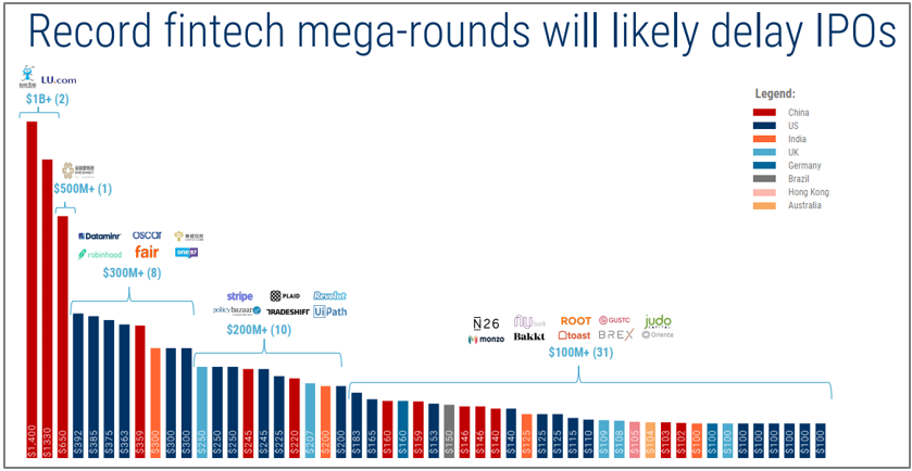 下图:2018年全球最大规模的金融科技私募阶段融资(来源:CBInsights)