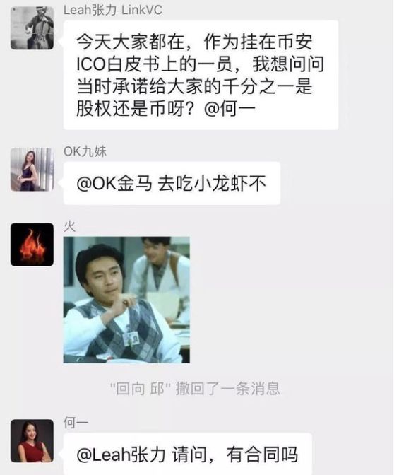 何一女士公开表示顾问的代币如果要那么就需要合同,走法律程序。