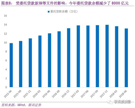 和信托贷款一样,委托贷款在这一轮严监管中,也进入缩量时代,今年上半年净融资规模为-8008亿元。