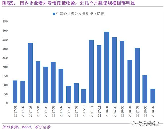 规范之后,境内企业海外债券发行规模明显回落。我们认为,在防范外债风险压力之下,国内企业境外发债的高峰已经过去。