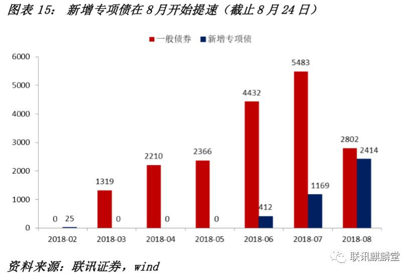 专项债和一般债在72号文下发后,发行明显提速,8月份截止24日,已经发行了2400多亿,未来在80%的限额的要求下,有望进一步提速,给基建提供支撑。