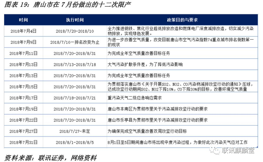 比如唐山在今年7月,因为环境污染和空气质量排名落后等问题,已经做出了十二次的非采暖季限产举措。