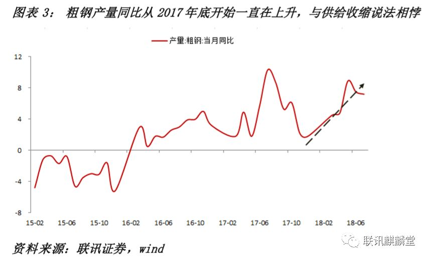 但是,如果真是因为供给收缩所致,那我们应该能看到作为供给表征的粗钢产量和增速趋稳甚至下滑。