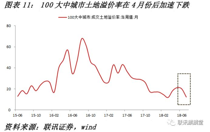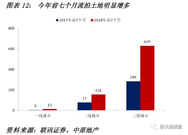 从数据来看,今年5月份以来,100大中城市的成交土地溢价率已经出现了明显的下滑,前七个月流拍土地也明显增加,土地市场已经出现降温信号,未来土地购置对地产投资的带动会相对减弱。