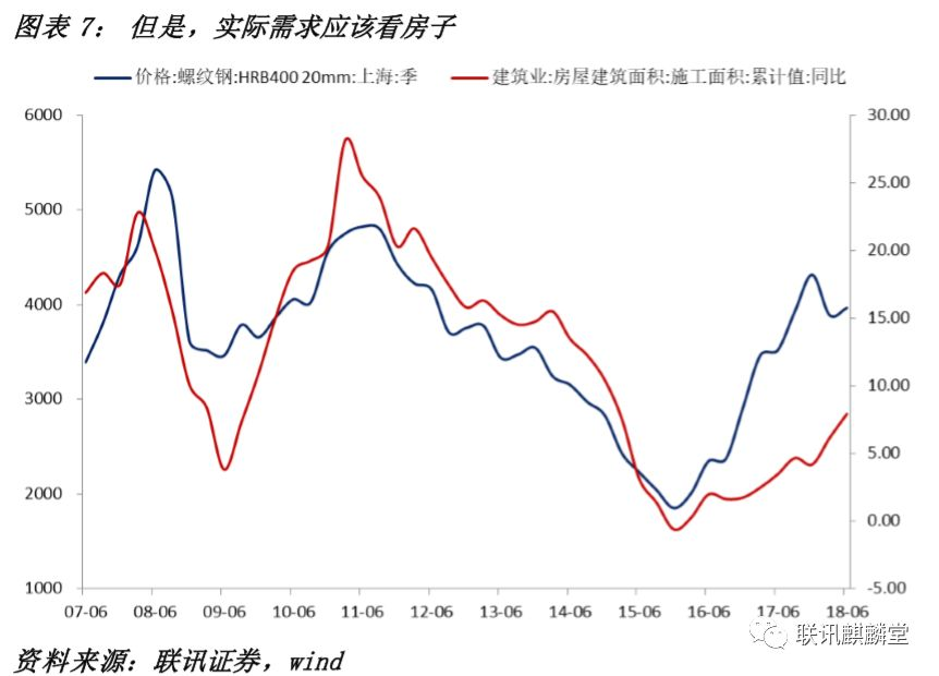 因为从历史数据来看,建筑业房屋施工面积增速和螺纹钢现价走势基本一致。