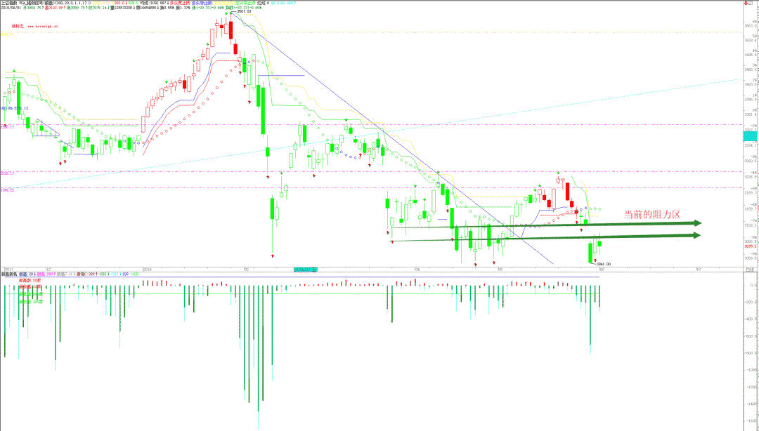 木羊:那我就不知道了,一般我们不按照这个预测。我们只是看市场真正的状况。我们现在看到的是周线。如果说这个支撑的地方被破掉的话,那可能会测试2800点附近的区域,底下还有个200多点的跌幅。
