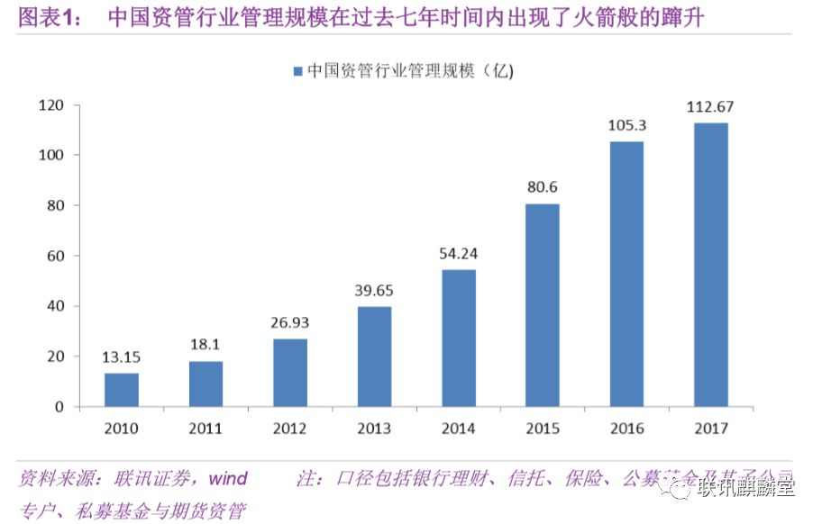2010年时,资管行业的管理规模只有13万亿,但到了2017年,已经超过了百万亿。