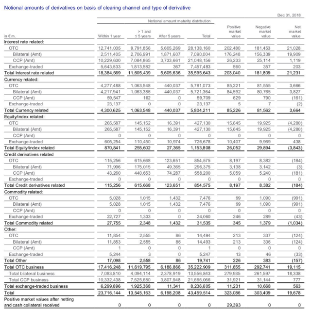 这个43.4万亿欧元的大猩猩(基于2018年底的数据)远远超过雷曼兄弟11年前在2008年秋季前不久持有的衍生品组合。