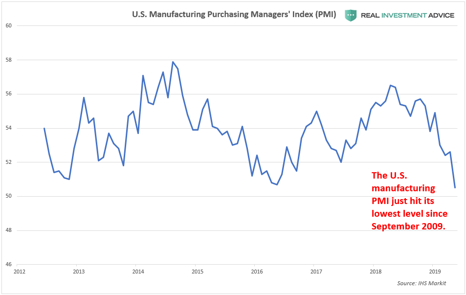 五、其他指标如下图所示,5月,美国制造业PMI跌至2009年9月以来的最低水平。