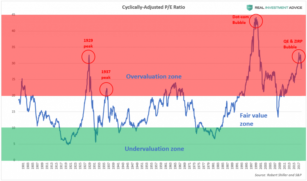正如下图所示,美股当前的估值水平已接近于1929年时的估值状况,而正是当年的股市大跌引发了随后的大萧条。
