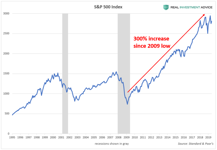 由于美股市场的估值已偏高,所以在明年左右出现经济衰退或熊市的可能性较高。Colombo指出,在过去10年中,美联储激进地宽松政策令美股上涨的速度高于公司实际收益的上涨,这意味着,美股现在的估值已极度偏高。当股市的估值极度偏高时,那么市场重回估值合理区间只是一个时间问题。