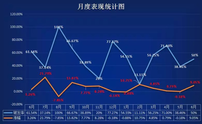 今年以来表现最佳的为2月,破发低,平均涨幅高,可谓“躺赢”。第二佳即为本月——6月,平均涨幅达到9.05%,如图。这与去年的6-7两月发行量大、涨幅高有点类似,料7月表现也不会差!